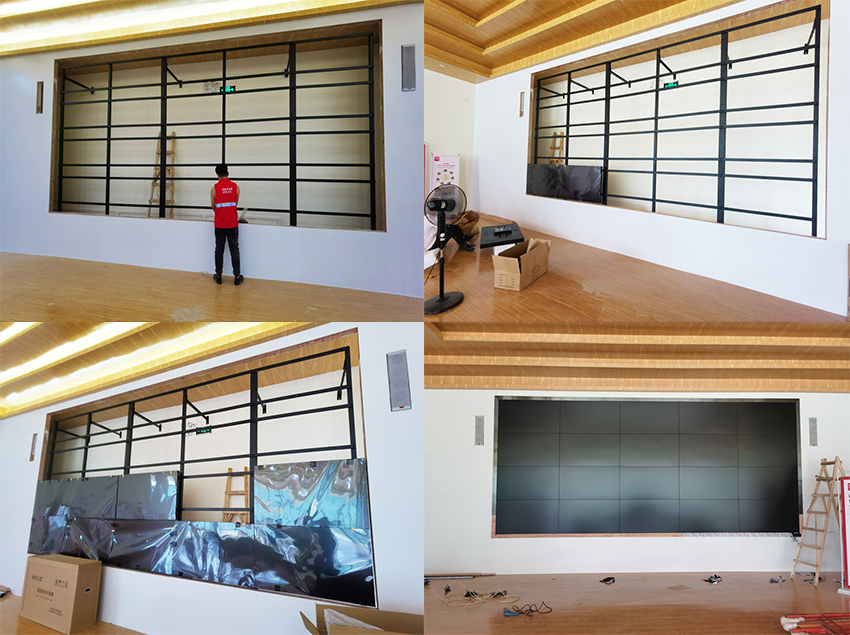 此次,采用的是信弘3.5mm拼縫,總計(jì)20塊55寸的超清顯示液晶拼接屏,安裝方式為落地支架安裝。